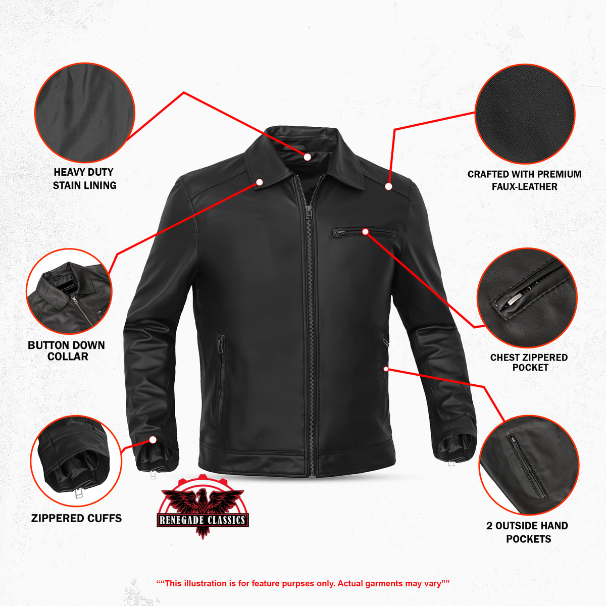 - Classic collar with clean-cut design for timeless motorcycle style