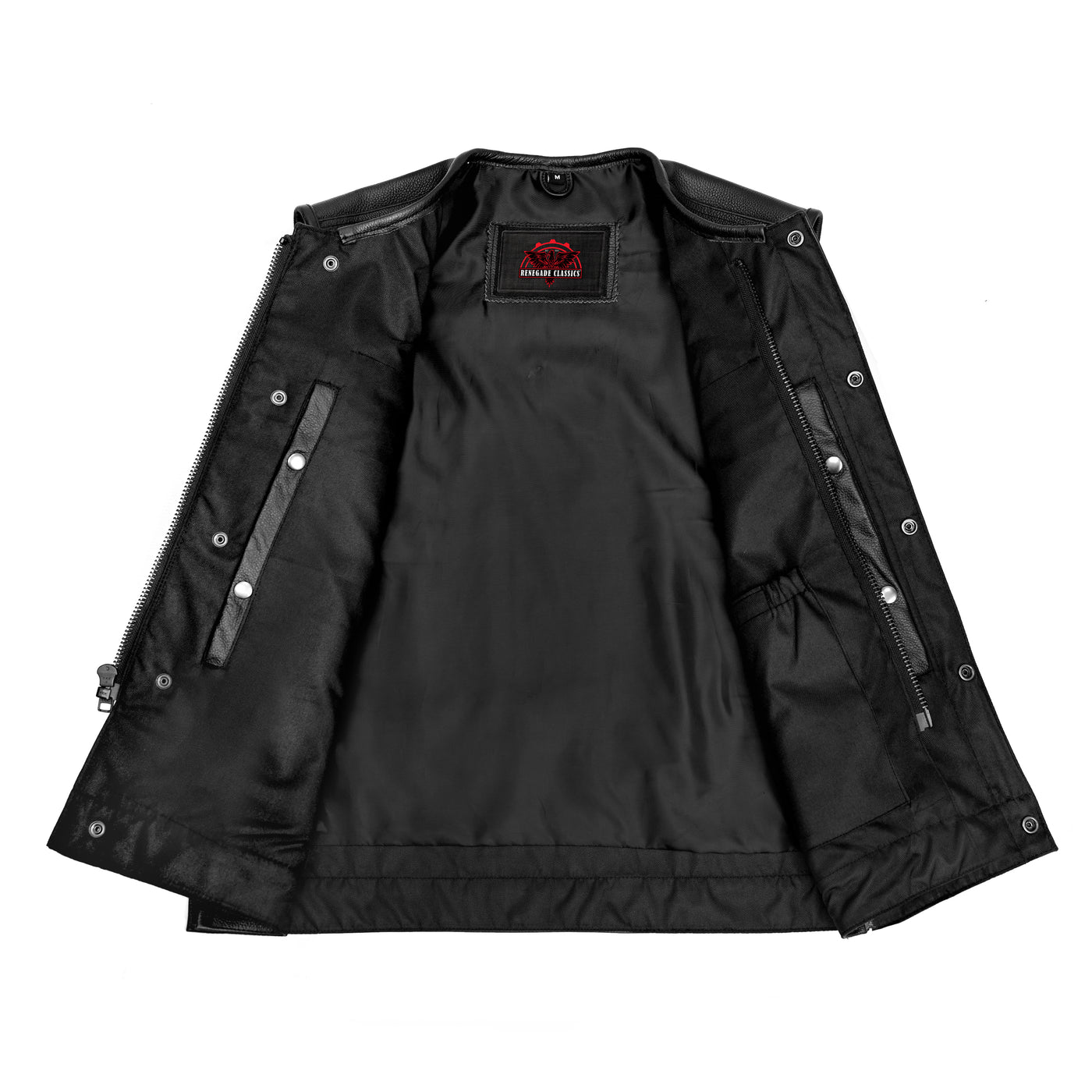 Find your men's Smart Access Pocket vest with a black metal zipper from Renegade Classics.