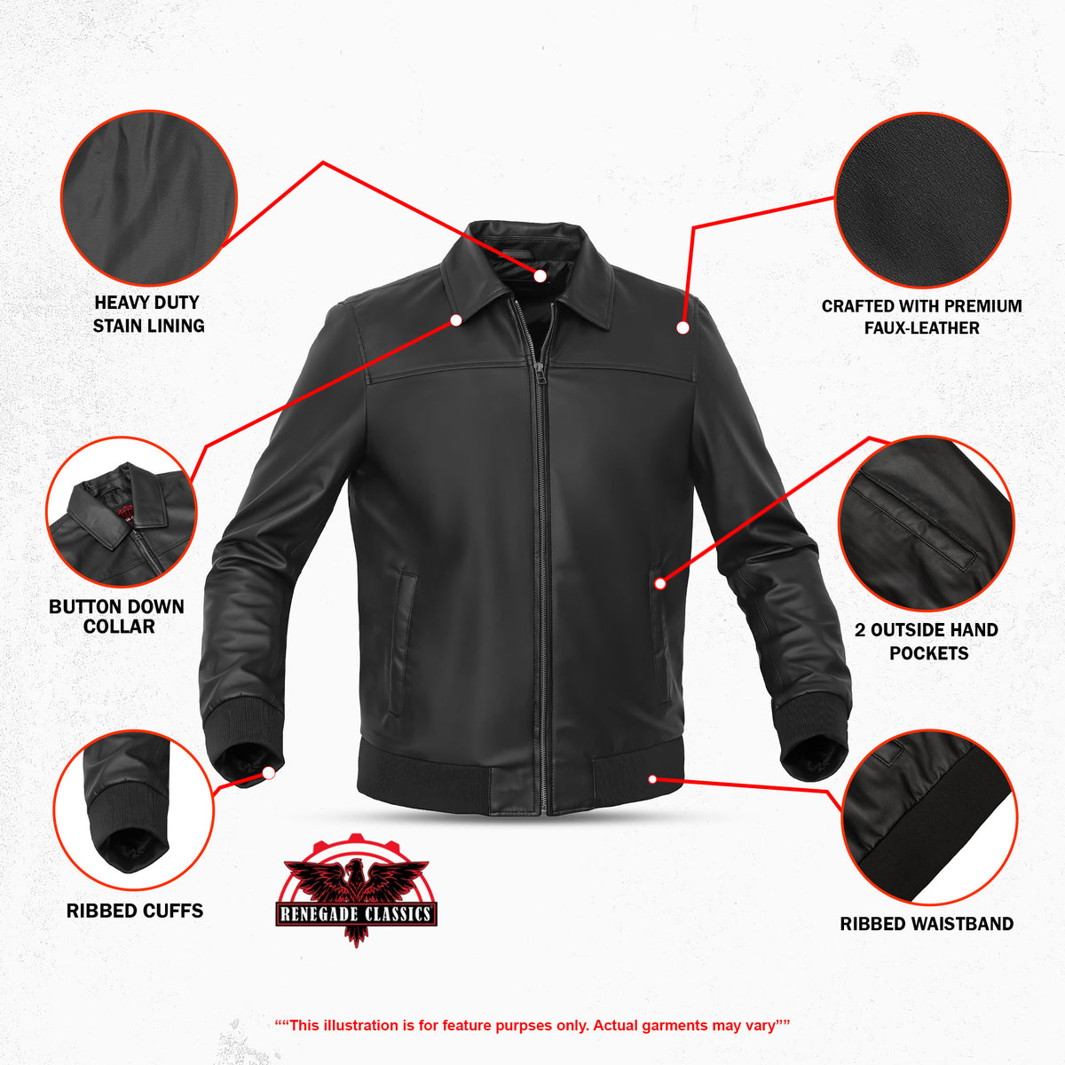 - Classic turn-down collar for timeless motorcycle style