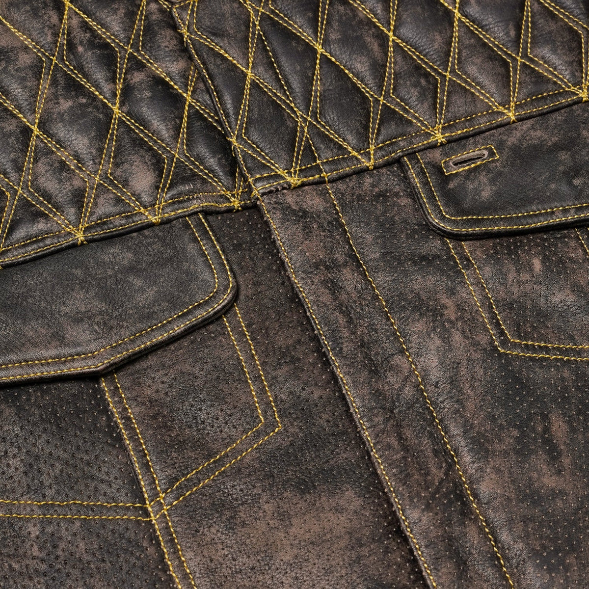 - Complete outer shell made with premium Antique Brown leather, distressed finish and perforated panels for airflow
