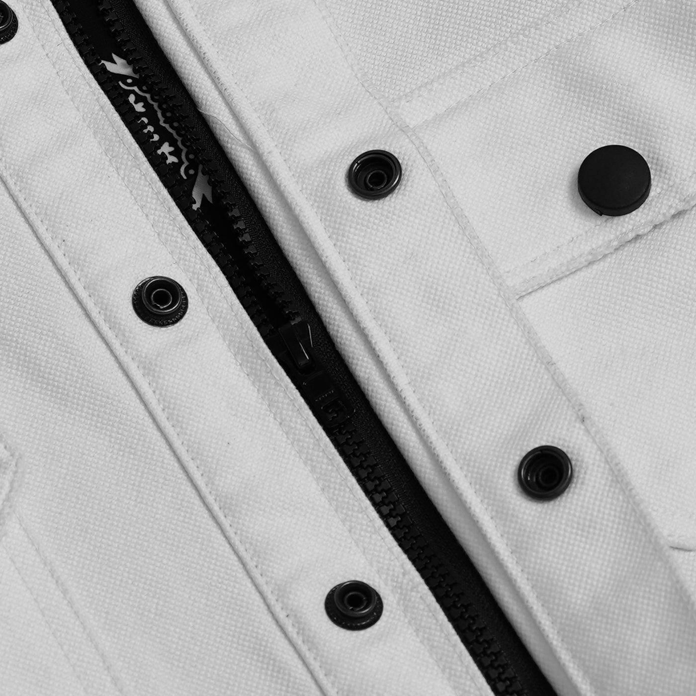 The Shadow Stripe Men’s Canvas Shirt merges high-visibility safety with rugged style and road-tested durability. Constructed from premium black canvas and detailed with 2" grey reflective Scotchlite stripes on both sleeves, this shirt is designed for riders who demand both function and flair—day or night. Inside, dull white sublimated mesh lining offers breathability, while concealed Kevlar reinforcements in the sleeves and upper back provide enhanced protection where it matters most.